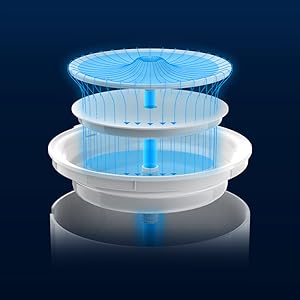 سیستم فیلتر چند لایه: این آبخوری گربه با یک سیستم فیلتر چند لایه مجهز شده است که آب را به طور موثرتری تصفیه می‌کند. مو و گرد و غبار را فیلتر می‌کند، بوی نامطبوع و فلزات سنگین را حذف می‌کند و طول عمر پمپ را افزایش می‌دهد.