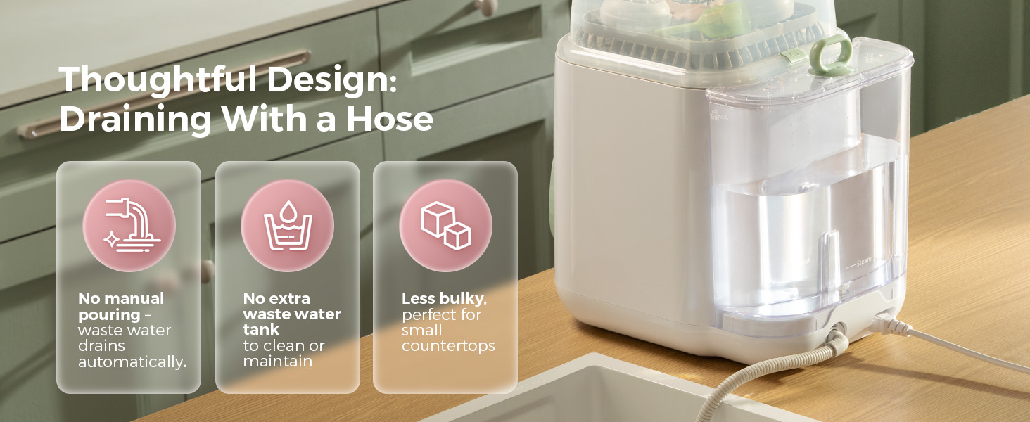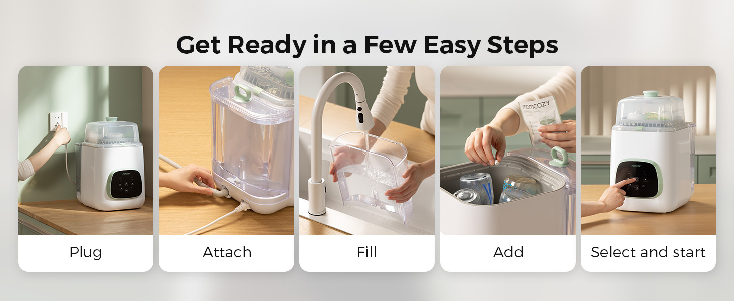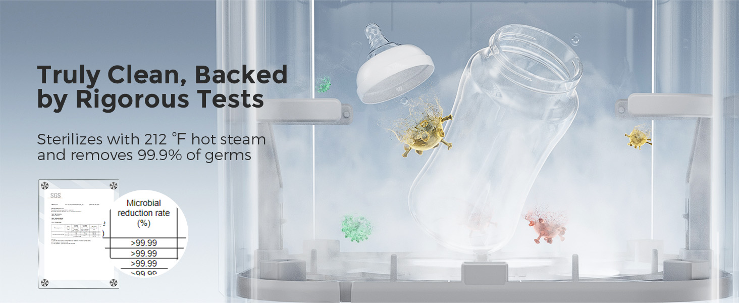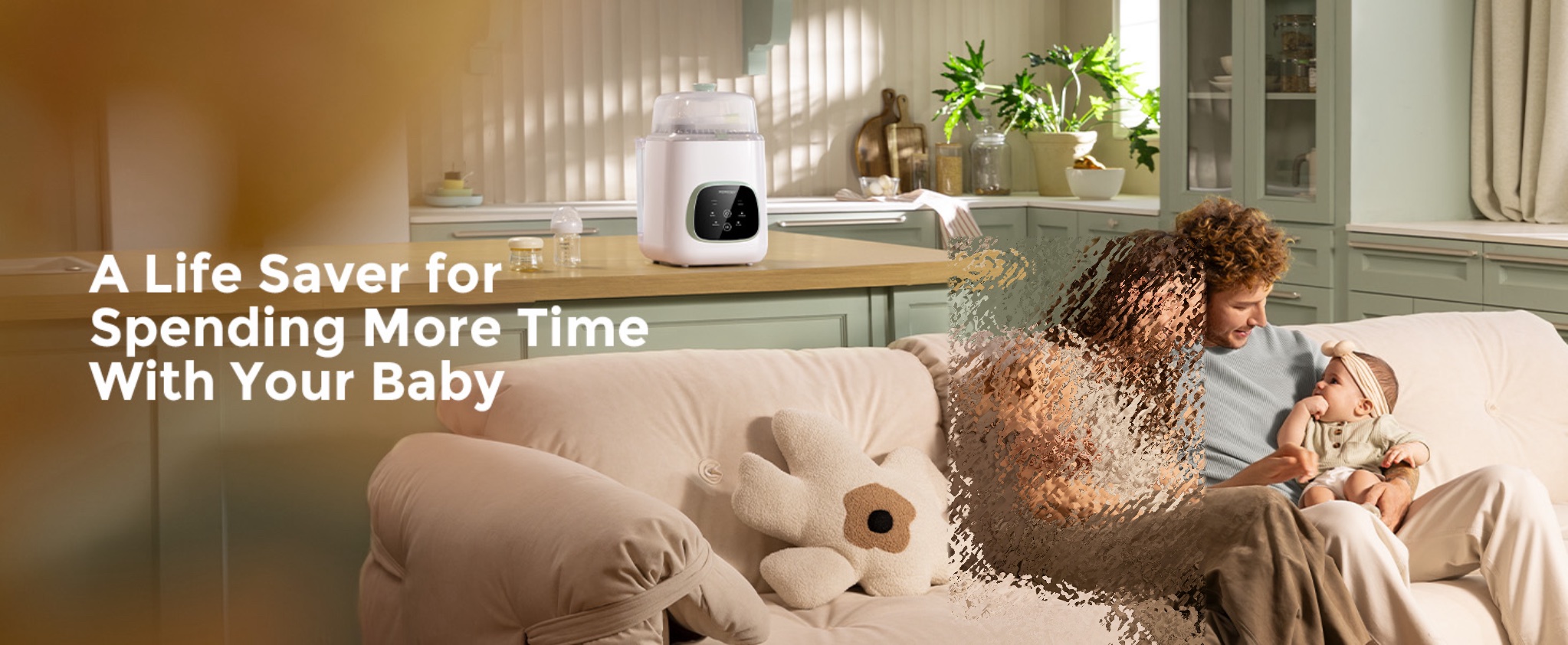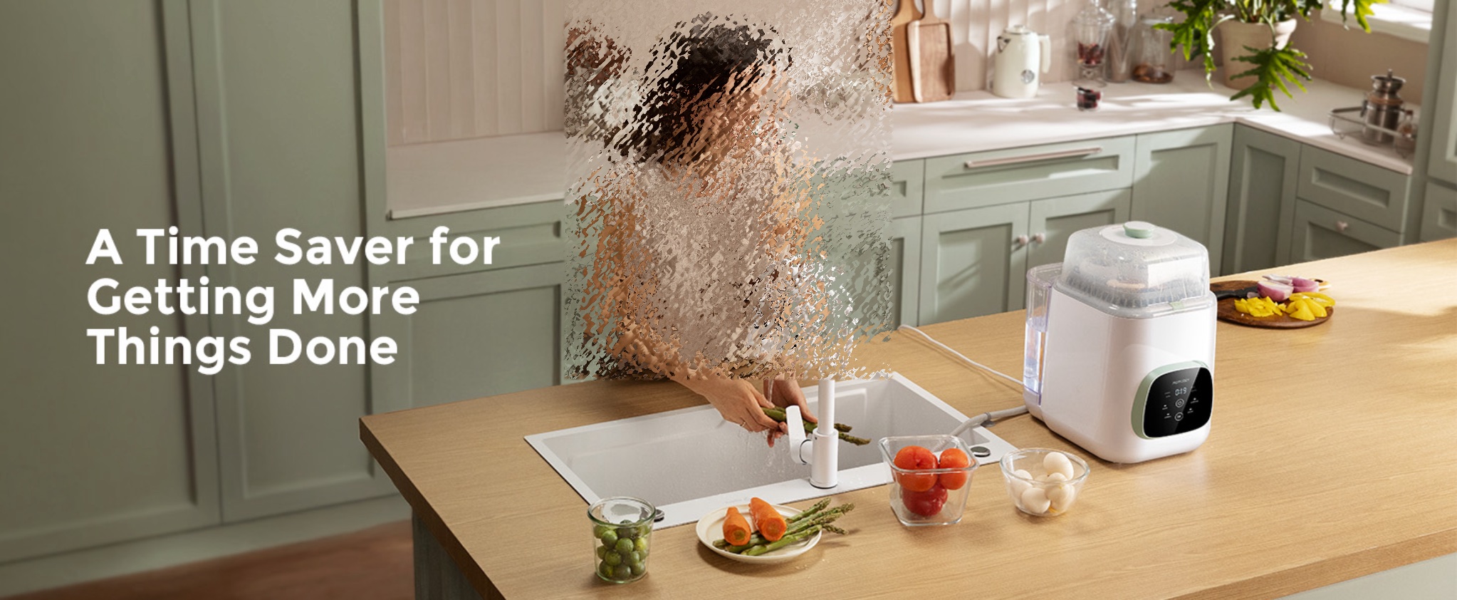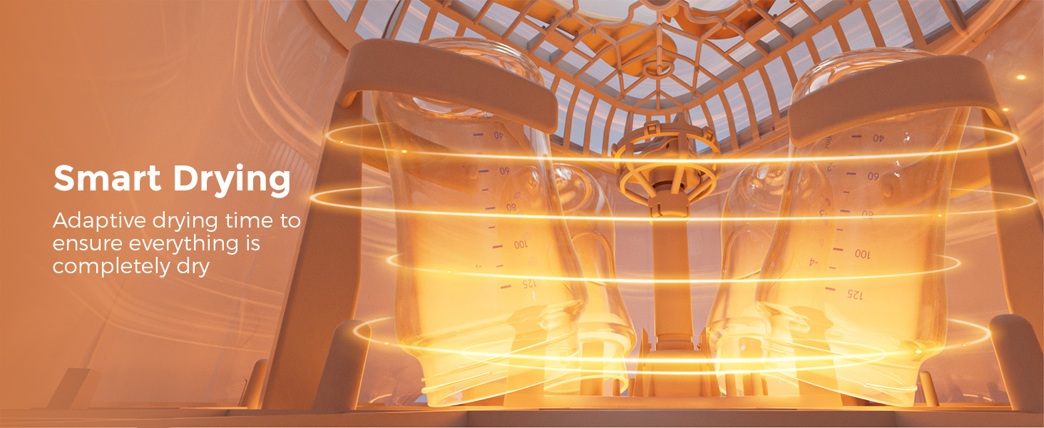 بهصورت خودکار بطریهای شیر، قطعات شیردوش، ظروف کودک و سایر لوازم را شستشو، استریل و خشک میکند تا وقت بیشتری را در کنار خانوادهتان بگذرانید.