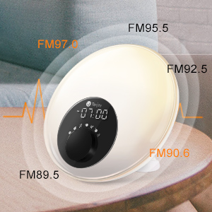 انتخاب صداهای چندگانه و رادیو FM: با انتخاب 10 صدای بیدار شدن، می توانید موسیقی خالص یا صداهای طبیعی مختلف را برای بیدار کردن خود انتخاب کنید. با فشار طولانی دکمه FM روی ساعت زنگ دار، دستگاه به طور خودکار تمام ایستگاه ها را اسکن می کند و حداکثر 20 ایستگاه را ذخیره می کند. می توانید زمانی را برای روشن شدن خودکار رادیو تنظیم کنید.