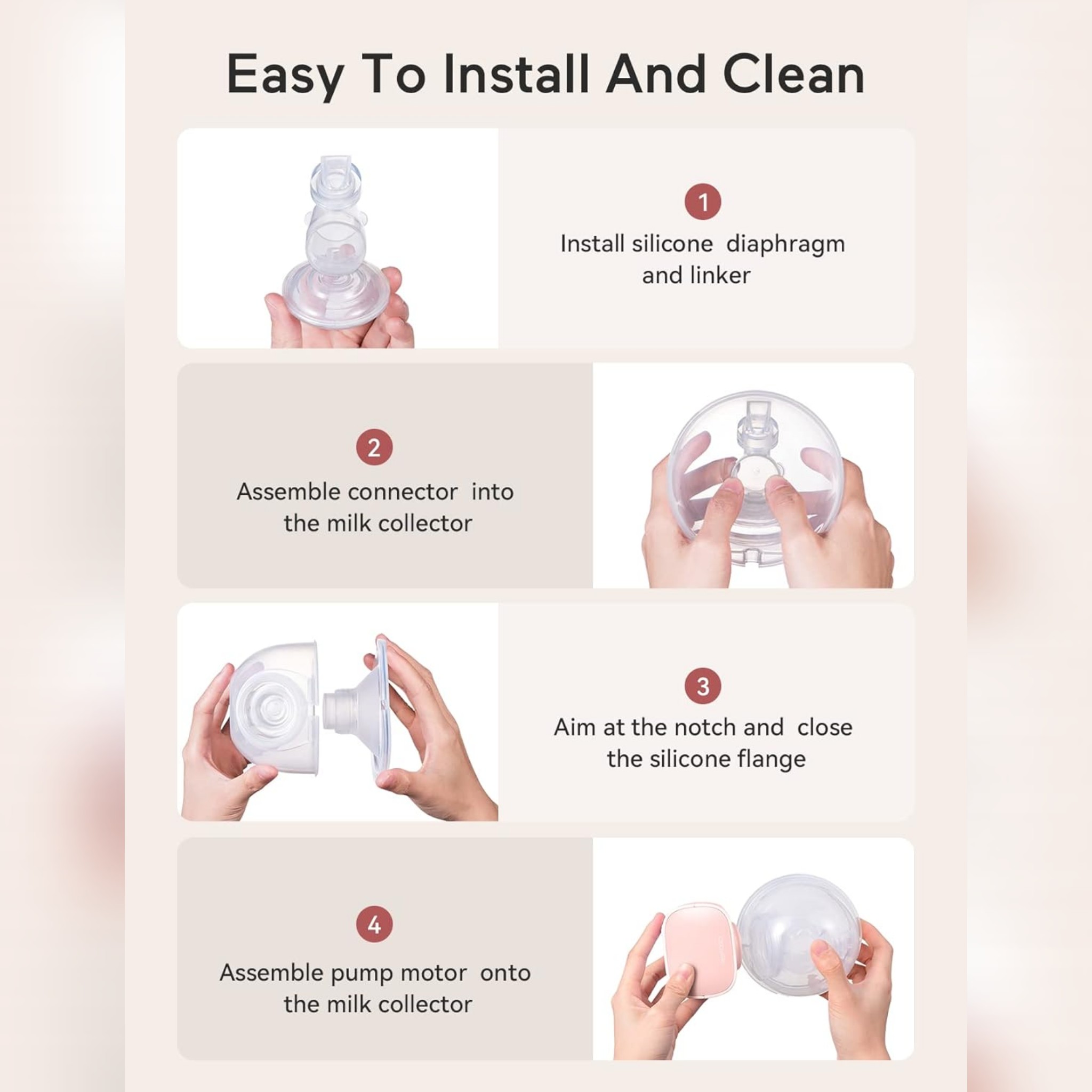 فناوری نوآورانه دوشیدن – طراحی پایدارتر و لبه آببندی مقاومتر، از نشت جلوگیری کرده و هر قطره شیر مادر را جمعآوری میکند. قطعات از سیلیکون خوراکی نرم ساخته شدهاند، به راحتی جدا و تمیز میشوند و مکش بهینه را تضمین میکنند.