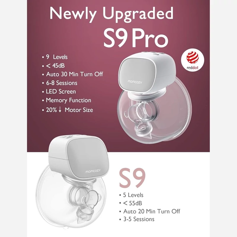 کوچکتر و هوشمندتر – شیردوش Momcozy S9 Pro حدود ۲۰٪ کوچکتر است و نمایشگر LED برای نمایش حالت و سطح مکش دارد. دکمههای سیلیکونی عمر بیشتری دارند و تعویض حالتها نرمتر انجام میشود. صدای کمتر از ۵۰ دسیبل هنگام استفاده، خواب نوزاد را بر هم نمیزند.
