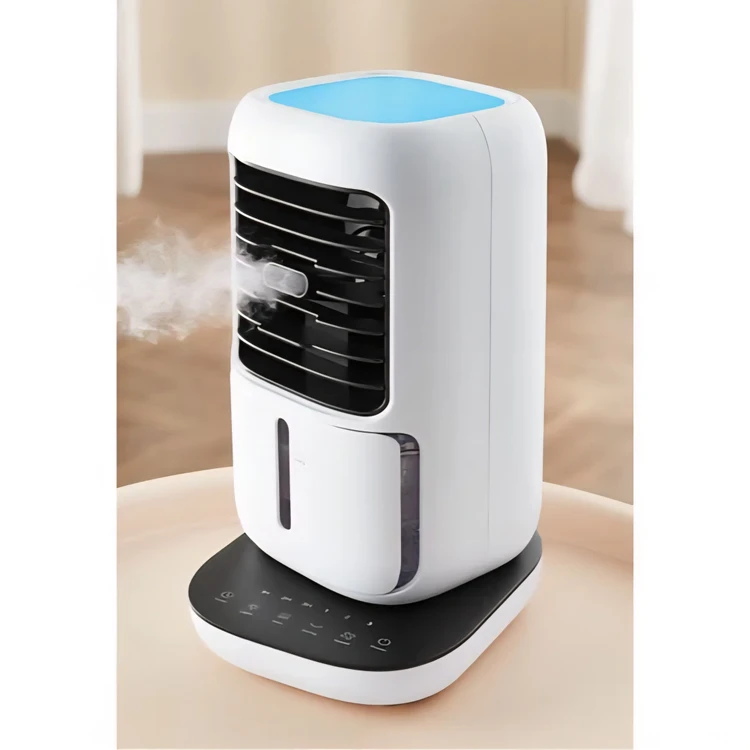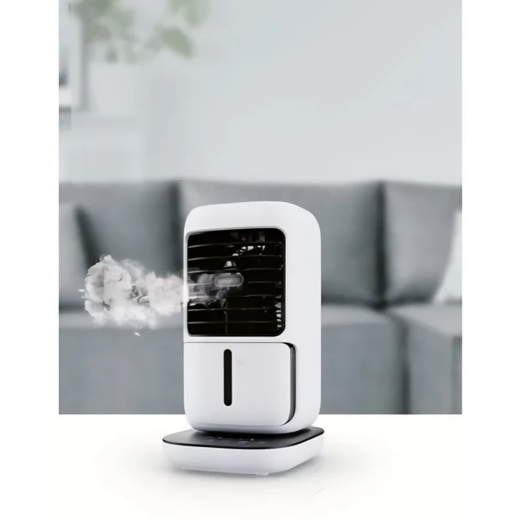 این پنکه رومیزی کاربردی، هوای اطراف شما را بهصورت طبیعی خنک و مرطوب میکند. تنها کافی است مخزن آن را با آب تمیز یا تکههای یخ پر کنید تا نسیمی خنک و دلپذیر در محیط پخش شود.