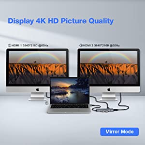 2. به دلیل محدودیت تراشه M1، اجازه نمایش DUAL MONITOR را نمی دهد. بنابراین، هیچ آداپتور USB C از نمایشگر دوگانه برای Macbook Pro/Air تراشه M1 پشتیبانی نمی کند. این هاب می تواند صفحه نمایش M1 Chip Macbook Pro/Air (2020) را فقط به یک نمایشگر گسترش دهد یا منعکس کند.