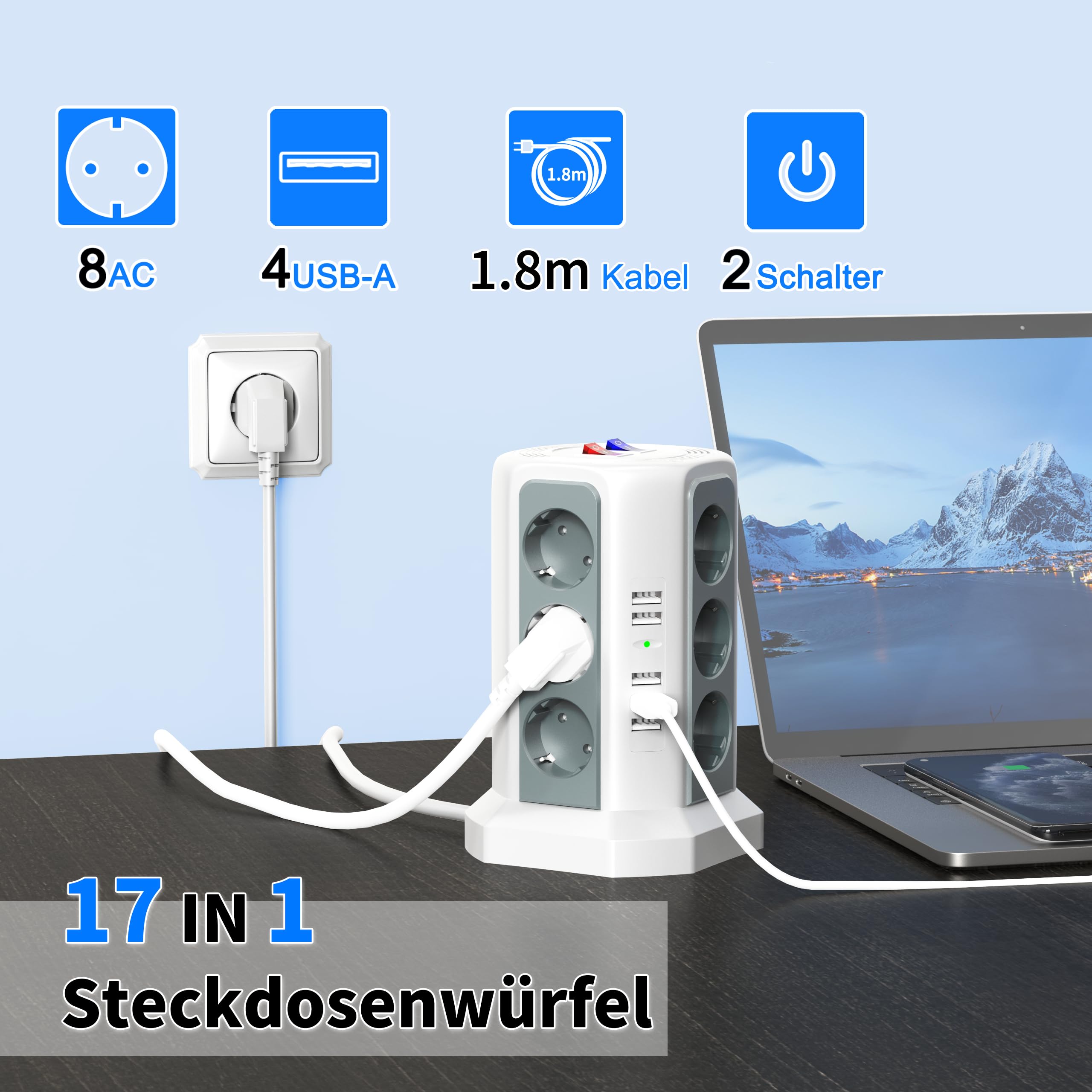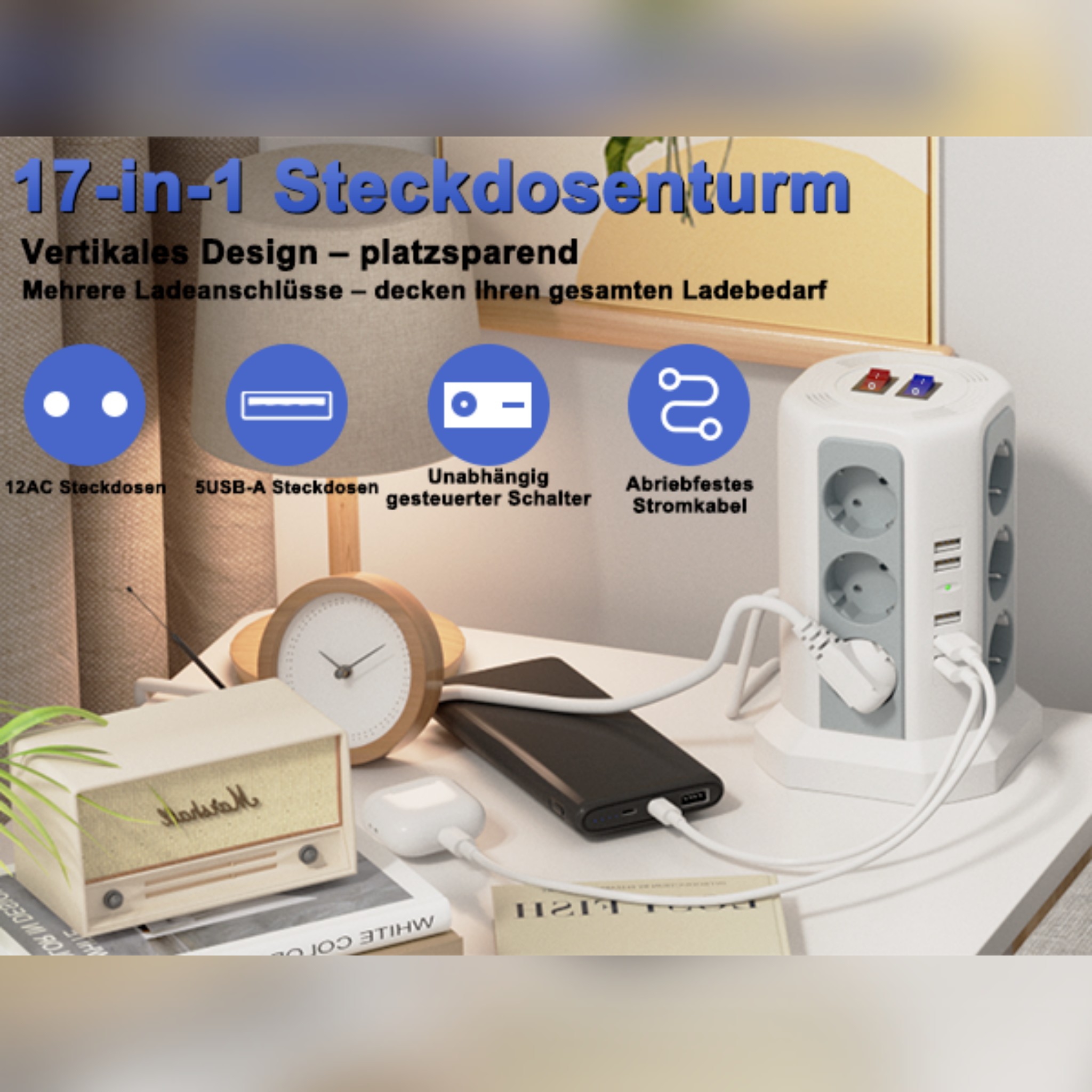 این چندراهی با اشغال فضای کم، بهترین انتخاب برای دفتر کار خانگی، میز کامپیوتر، اتاق گیمینگ و اتاق کودک است. سازگار با لپ‌تاپ، کنسول بازی، لوازم آشپزخانه و انواع دستگاه‌های هوشمند و مناسب برای ایجاد یک محیط مرتب و حرفه‌ای.
