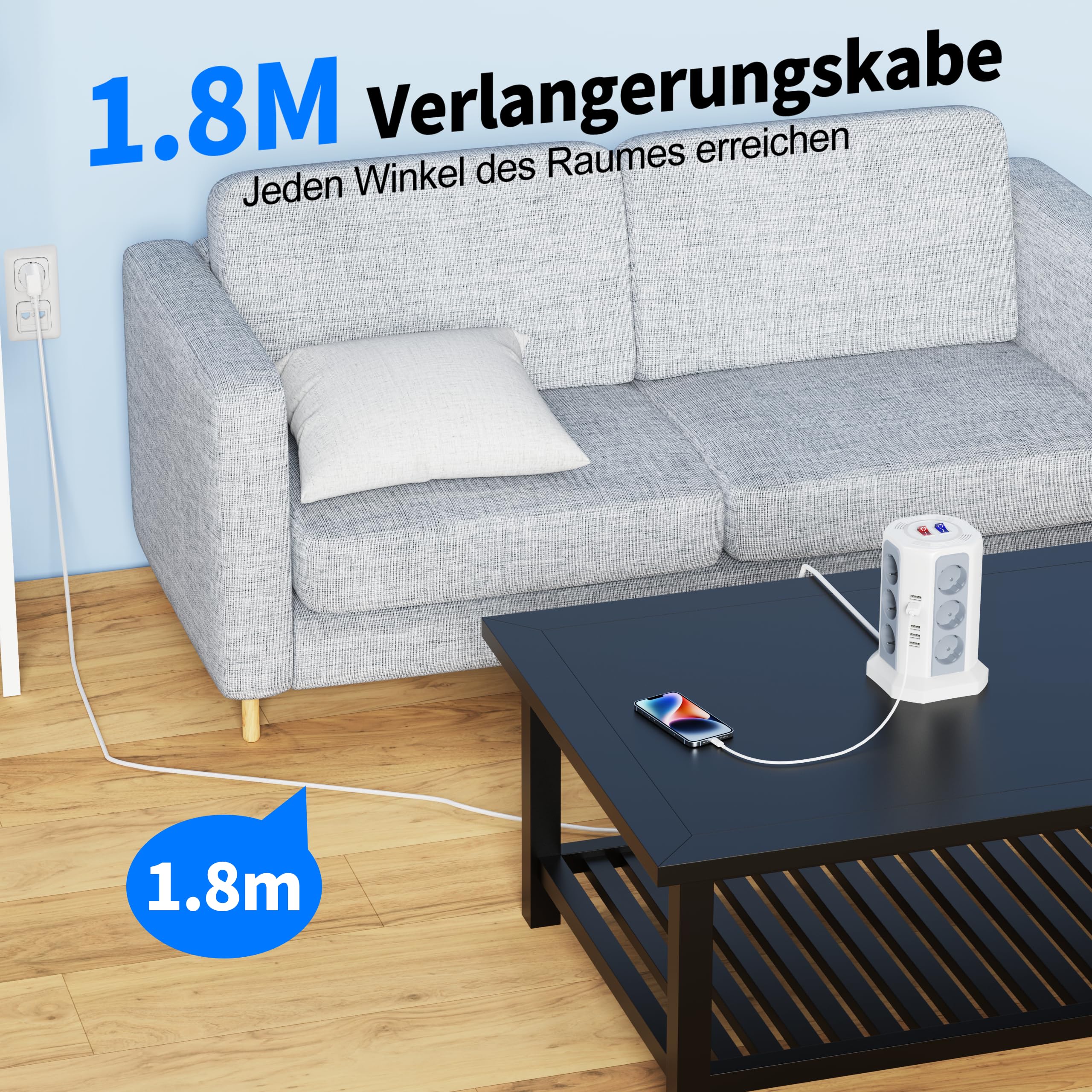 کابل ۱.۸ متری این چندراهی، امکان دسترسی راحت به پریزهای دور یا پشت مبلمان و میز را فراهم می‌کند. طراحی مناسب برای اتصال تلویزیون، لامپ، سیستم صوتی، کامپیوتر و لوازم پرمصرف مانند مایکروویو یا دستگاه‌های اداری.
